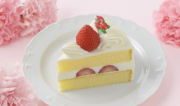 【特 長】母の日限定バラの花ピック付き苺のショートケーキです。銀座コージーコーナーオリジナルの小麦粉を使用した、きめ細かくふわふわに焼き上げたスポンジで、フレッシュな苺とミルク感とコクがある風味豊かな北海道産生クリーム入りホイップクリームをサンド。クリームとスポンジが同時に溶けていく一体感をお楽しみください。