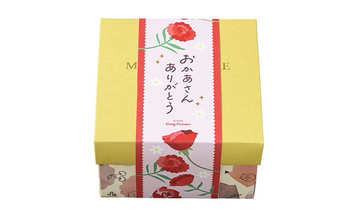 ケーキBOXやギフト商品につけられる、ありがとうのメッセージの入った母の日にぴったりな「掛け紙」と「タグ」をご用意しております。お客様のご要望でおつけいたしますので、スタッフにお気軽におたずねください。