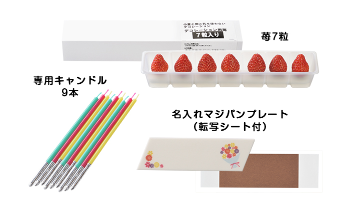 - 苺とマジパンプレートは別添になります。写真は飾り付け例です。