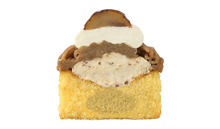 渋皮栗の上品でコク深い味わいと、クリーム、スポンジのハーモニーが楽しめるモンブランです。ふんわり・しっとり焼き上げた口どけのよいスポンジの中に、熊本県産蒸し栗ペーストを使用したなめらかな栗カスタードクリームを入れ、渋皮栗の粒入りチーズクリームを重ね、仕上げに熊本県産蒸し栗ペーストを含む4種のマロンペーストを合わせた渋皮栗あんを絞りました。芳醇さが増し、より渋皮栗のコク深い味わいをお楽しみいただけるようになりました。