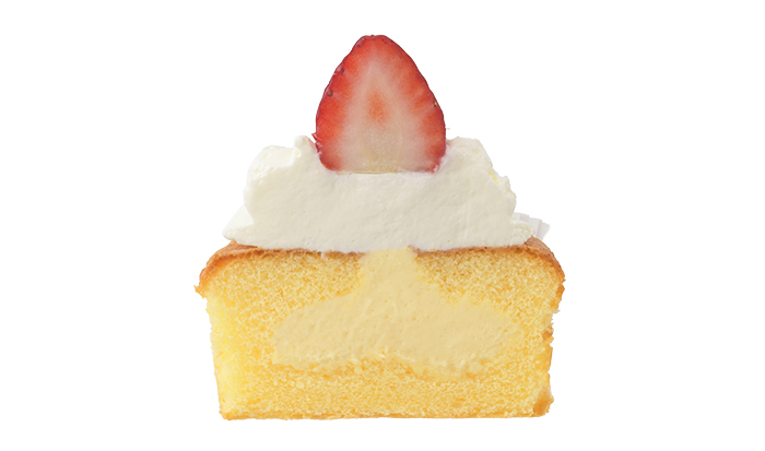 カスタードのまろやかな味わいにスポンジのふわふわ食感、生クリーム入りホイップクリームのすっきりとした甘さと苺の酸味が絶妙にマッチした、どこかホッとできる味わいのカップショートケーキです。