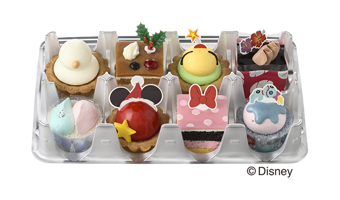 「ミッキー&フレンズ」に、『リロ&スティッチ』の「スティッチ&スクランプ」「リロ」、『アナと雪の女王』の「エルサ&アナ」「オラフ」を、味わい豊かなプチケーキで表現しました。