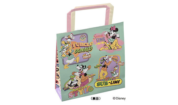 バッグには、「ミッキーマウス」&「デイジーダック」、「ミニーマウス」&「ドナルドダック」など、いつもとは違うペアをワッペン風にデザイン。それぞれ読書したり、じゃれ合ったり、とっても楽しそう!