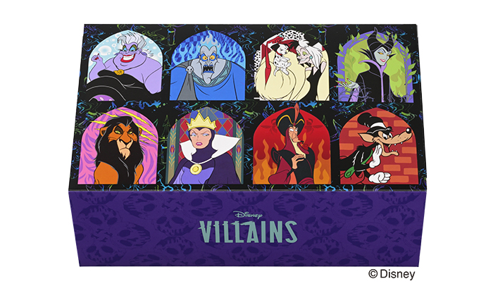 今年は『アラジン』の「ジャファー」、『三匹の子ぶた』の「ビッグ・バッド・ウルフ」、『ヘラクレス』の「ハデス」、『101匹わんちゃん』の「クルエラ」など、8種のプチケーキをアソート。ダークな世界観をケーキのデコレーションやフィルム、専用ボックスのデザインで表現しました。