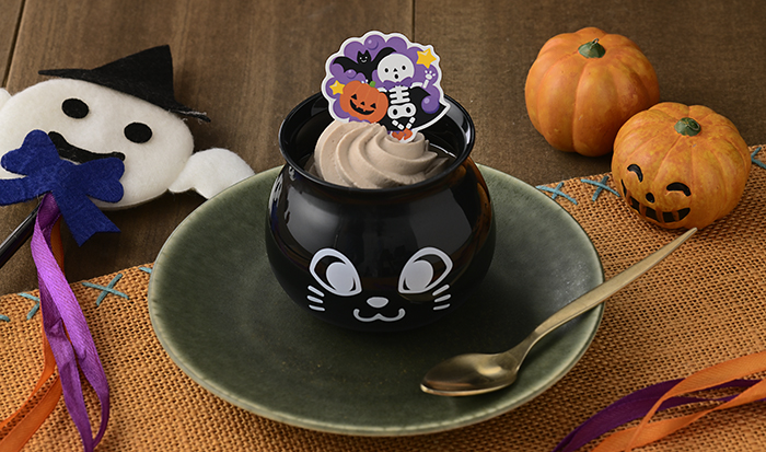 黒ねこがモチーフの器に入った、ハロウィン限定プリンです。